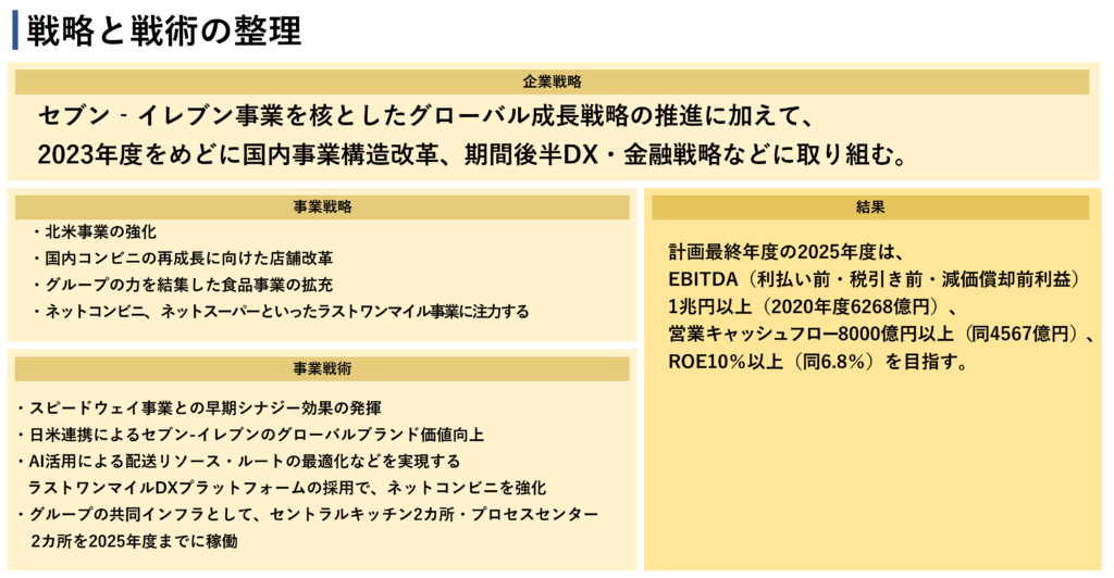 企業としての方向性も可視化されているため、社内外を含めたステークホルダーにとって、セブン&アイ・ホールディングスが、今後はどのような戦略や戦術を用いて企業として成長していこうとしているのかが伝わりやすくなっています。