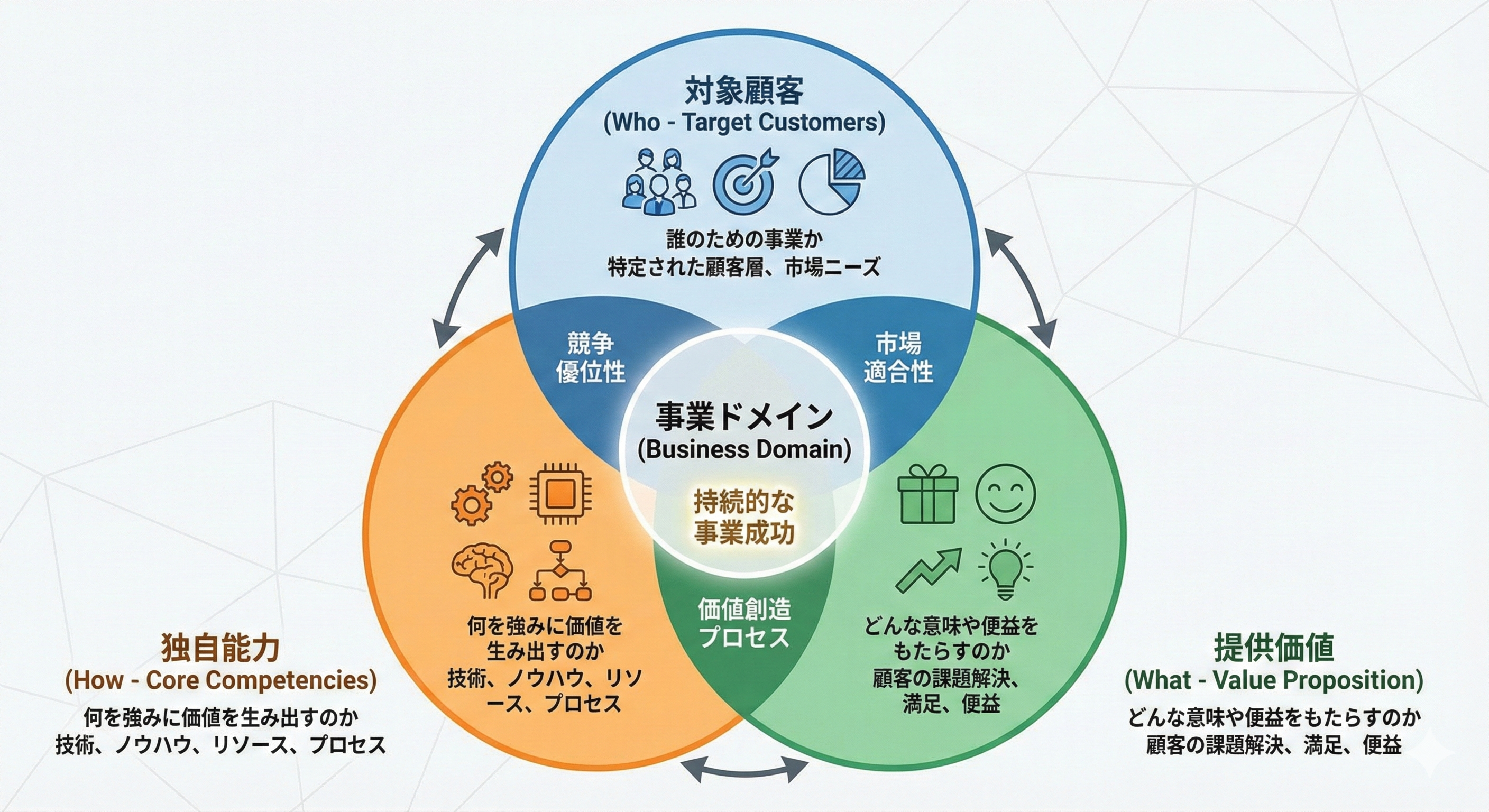 事業ドメインは、次の3つの要素で整理されることが一般的です。